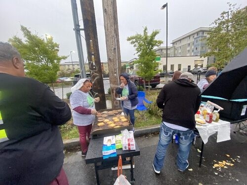 Our outreach team just finished its third week of feeding the homeless, serving over 250 burgers, soft drinks, and chips to those in need. We set up the BBQ at the feeding site, cooking about 260 patties and providing 250 cans of soft drinks. With the help of 10 dedicated volunteers, we took a moment to pray with the homeless before starting the BBQ, asking God for protection and for more people to come and eat with us.